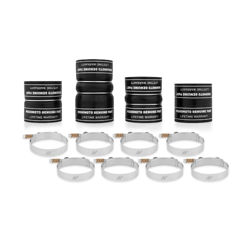 Mishimoto is proud to release a direct-fit silicone boot kit with DuraCore technology designed specifically for the 6.4L Ford Powerstroke.Mishimoto DuraCore technology is the synthetic material that comprises the innermost layer of all Mishimoto silicone diesel boots.Compared to normal silicone, DuraCore provides superior resistance to heat, pressure, fuel, and oil.This effectively increases the life of our boots by preventing leaks and blowouts.To add even more reliability this kit includes Mishimoto constant-tension T-bolt clamps for accurate and consistent holding power.As with all our products, the Mishimoto lifetime warranty protects your purchase.